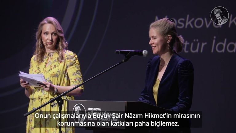 3 Haziran 2023 tarihinde Russkaya Pesnya Tiyatrosu’nda düzenlenen Nâzım Hikmet’i Anma Etkinliğimizde Moskova Kuzey Bölgesi Kültür İdaresi Müdiresi Sn. Aleksandra Valeryevna İlyina konuşma yaptı. Nazım Hikmet Dostluk Ödülünü bugün ünlü gazeteci, bir çok kitabın yazarı ve ünlü Türk...