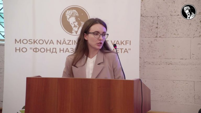 Rusya Devlet Beşeri Üniversitesi 3. Sınıf Öğrencisi Anastasiya Kaparçuk “Nâzım Hikmet’in Moskova’ya gitmesi: Uzun beklenen özgürlük mü yeni bir hayal kırıklığı mı?’’ konusunda sunum yaptı. Студентка 3-го курса Российского государственного гуманитарного университета Анастасия Капарчук...